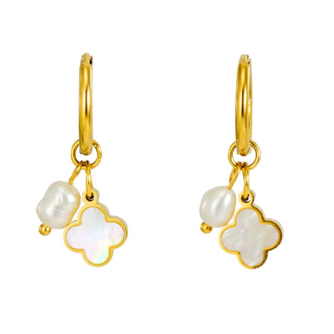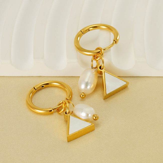 Pearl and Shell Fan-Shaped Earrings in 18K Gold Plated Stainless Steel