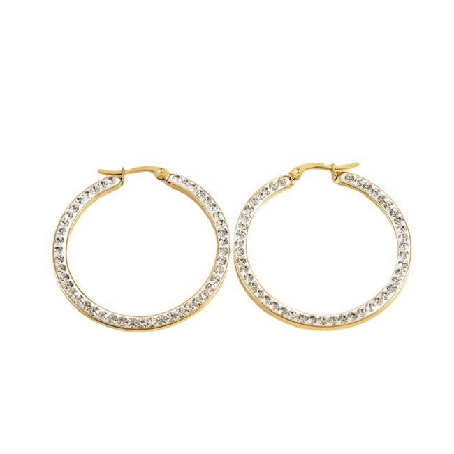 Bow-Shaped Stainless Steel Earrings with Crystal Accents in 18K Gold Tone
