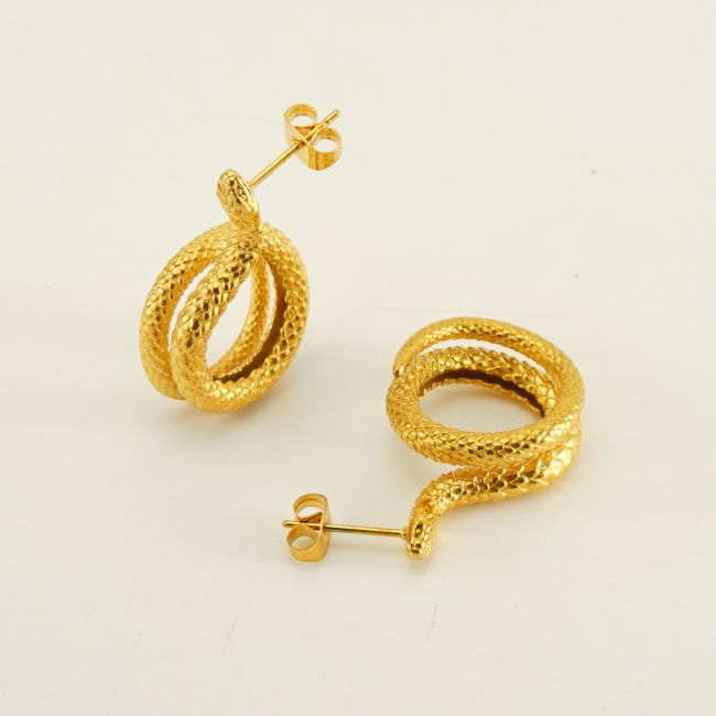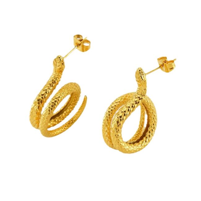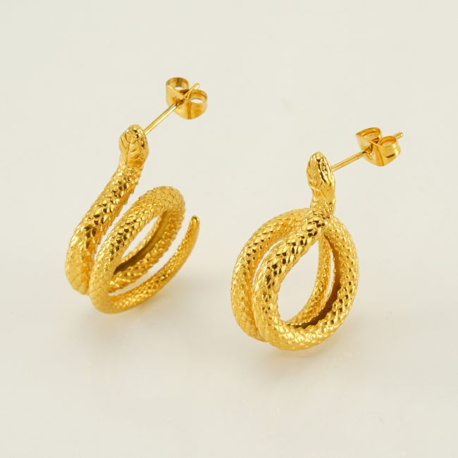18K Gold Plated Stainless Steel Snake Earrings for Women - Fashionable Animal Design