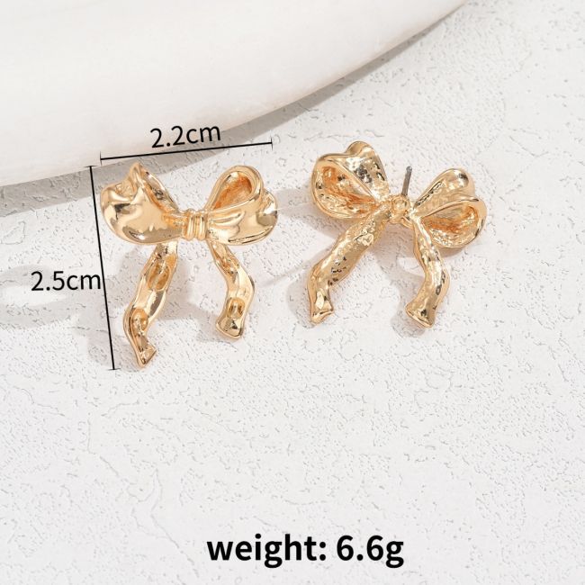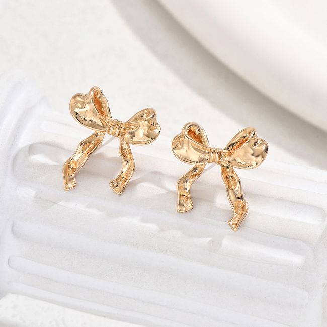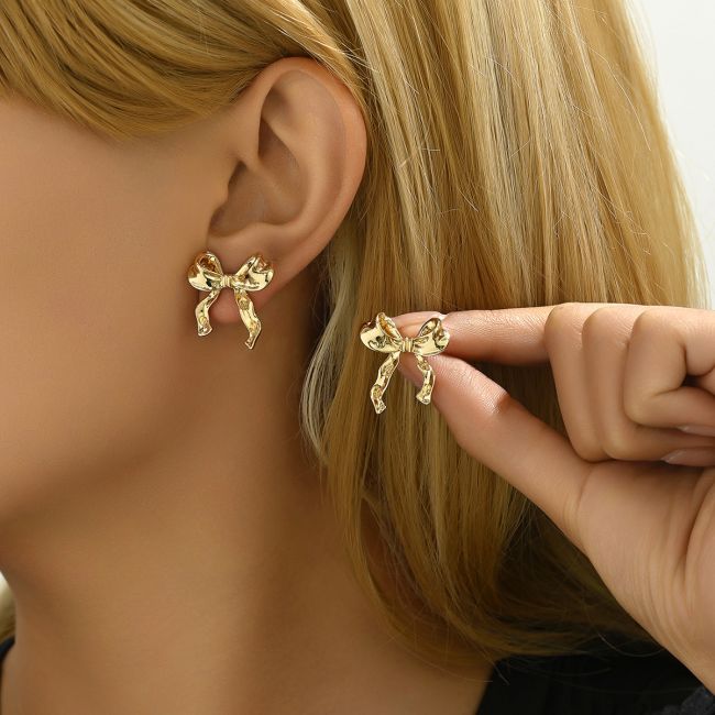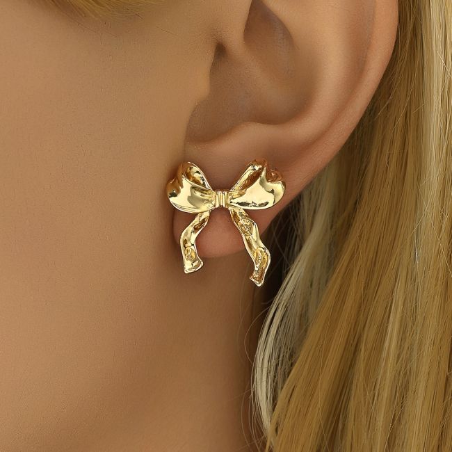Bow-Shaped Elegant Women's Stud Earrings in Gold and Silver