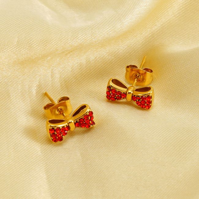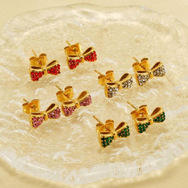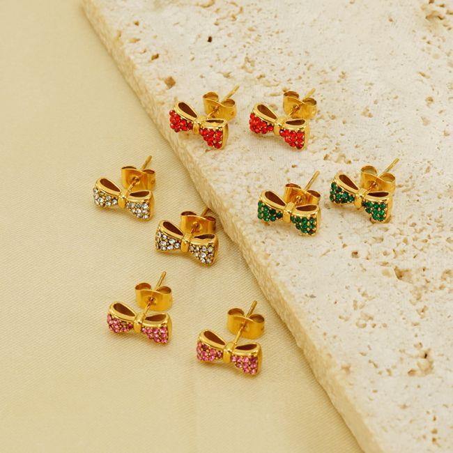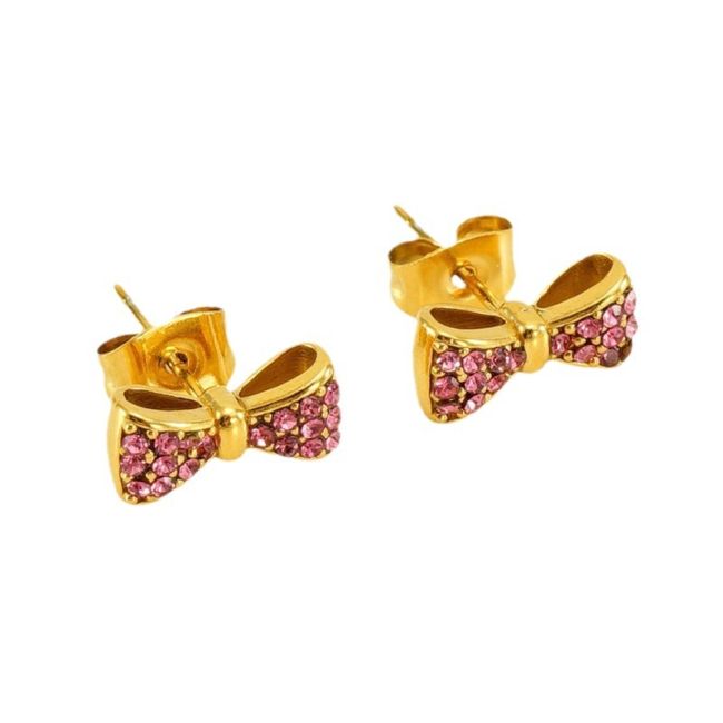 Bow-Shaped Stainless Steel 18K Gold Plated Diamond Accent Earrings for Women