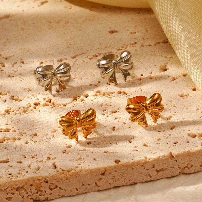 Bow-Shaped Stainless Steel Earrings for Women - 18K Gold and Silver Tone Fashion Accessories