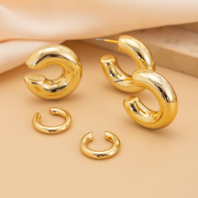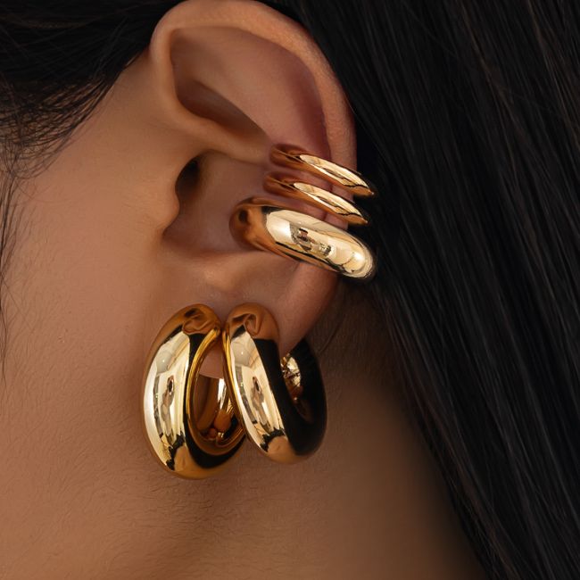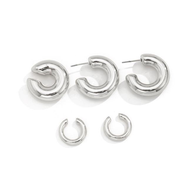 - Design: Modern C-shaped hoops with a geometric silhouette
