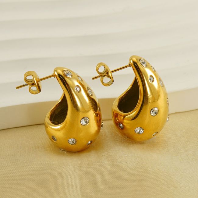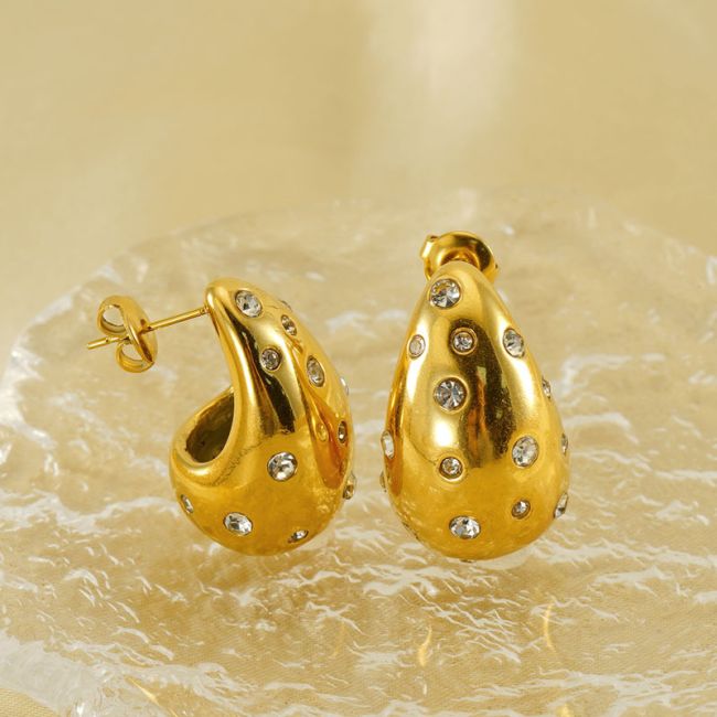 Chic Plump Teardrop Earrings for Women - 18K Gold Plated Stainless Steel Fashion Statement Jewelry
