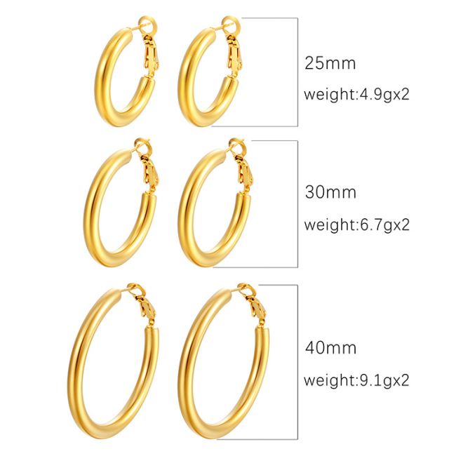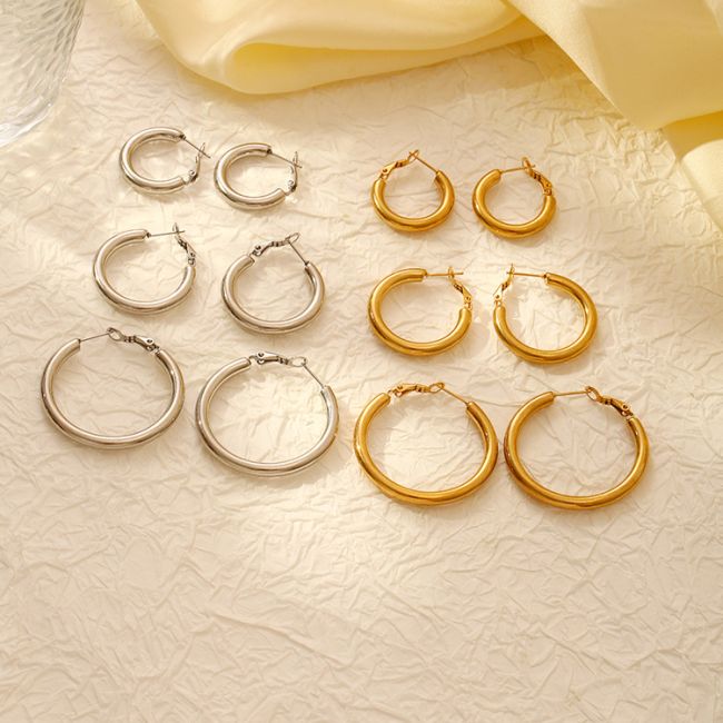 Chunky Round Stainless Steel Hoop Earrings for Women - Retro Geometric Design with 18K Gold Plating