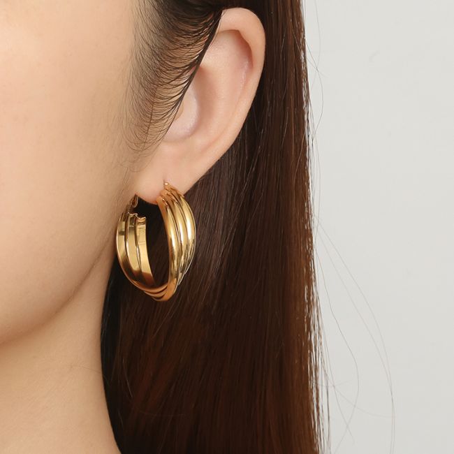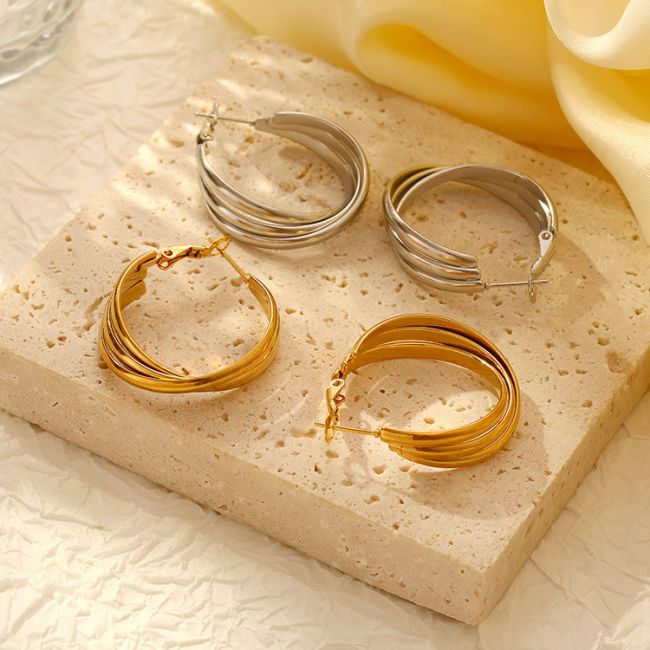 Circular Multi-Layer Stainless Steel Earrings for Women with 18K Gold Plating