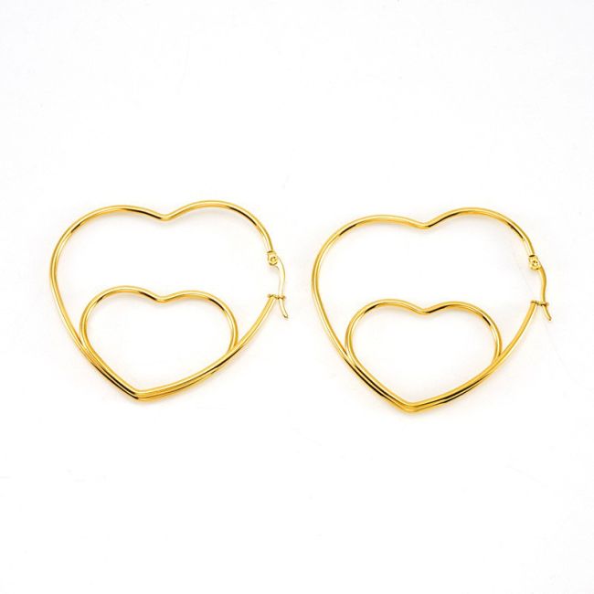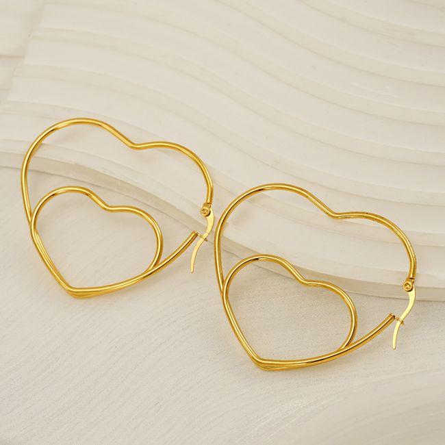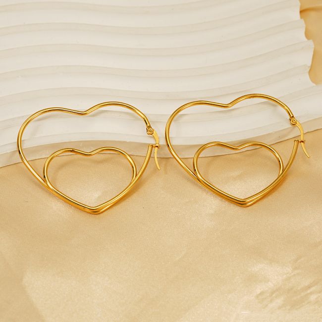 Double Layer Hollow Heart Earrings - Minimalist Elegant Stainless Steel Women's Earrings