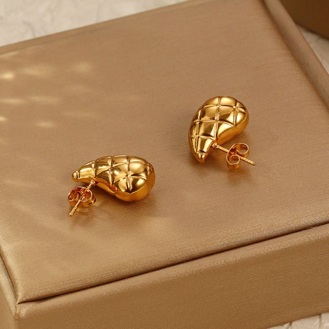 Drop Earrings with Fashionable Mesh Pattern in Solid 18K Gold and Stainless Steel
