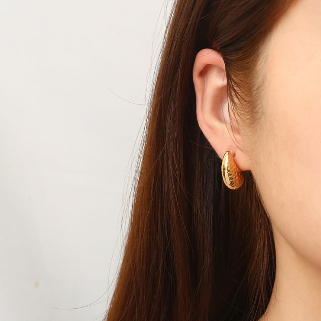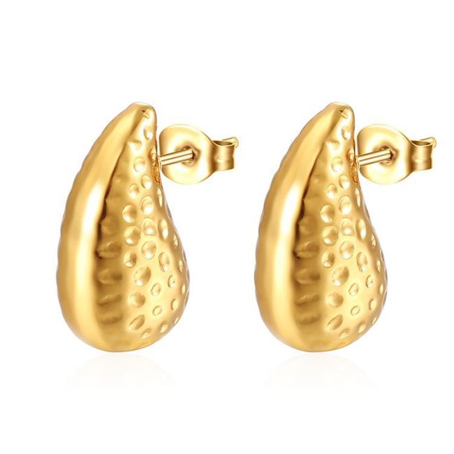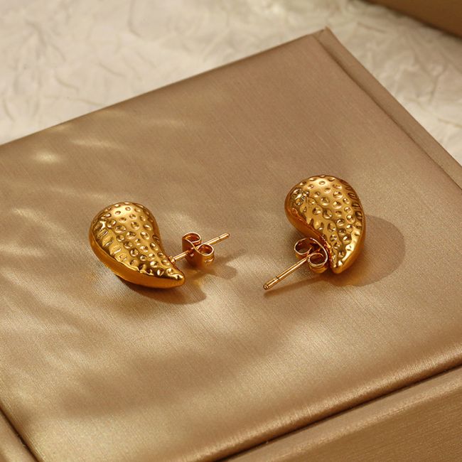 Drop Earrings with Hammered Texture in Stainless Steel with 18K Gold Plating