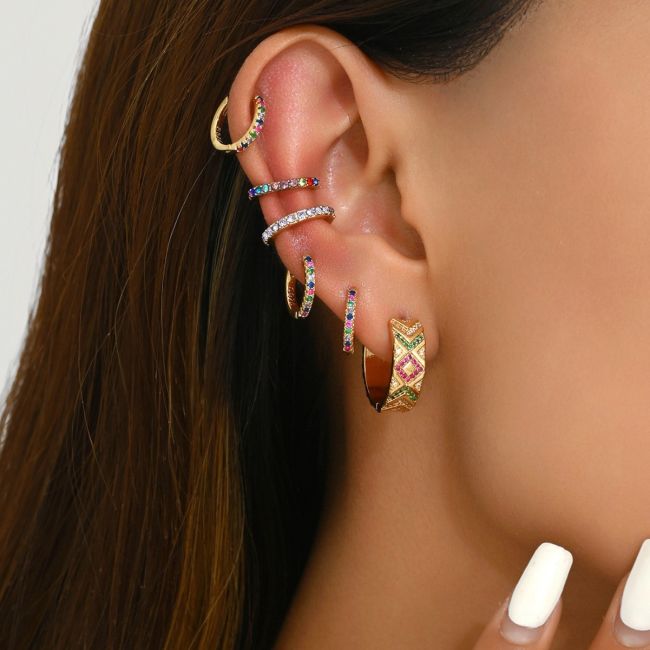 Earrings - Light Luxury Fashion U-Shaped Geometric Stud Earrings with Colored Zircon Stones