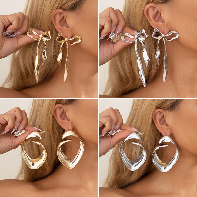 Earrings Set with Crinkled Smooth Alloy Bow Design in Irregular Shapes