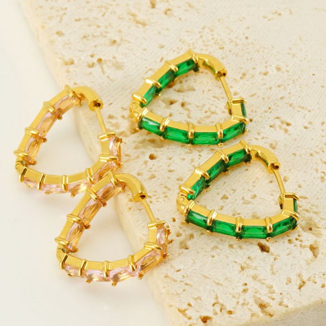 Heart-Shaped Stainless Steel Earrings with Zirconia for Women - Elegant and Versatile