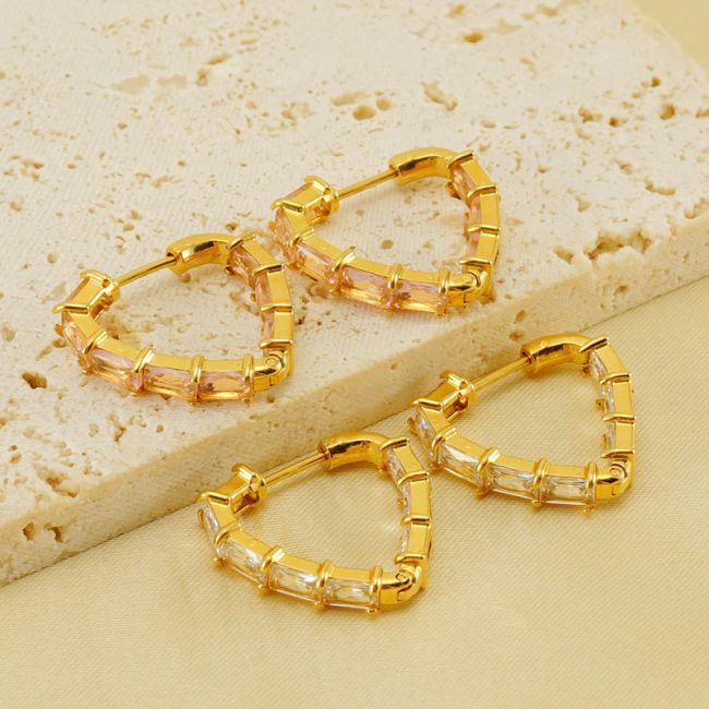 Earrings with Hollow Heart Design and Zircon Stones in 18K Gold-Plated Stainless Steel