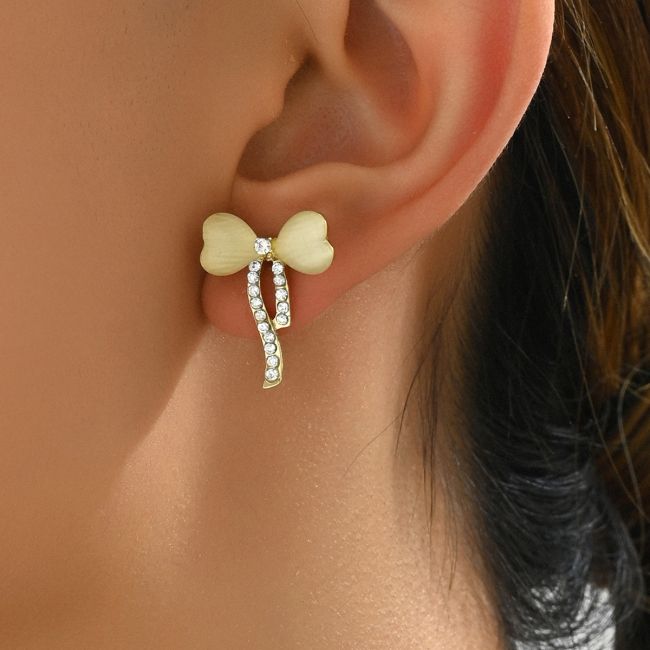 Earrings with Minimalist Bow Design and Geometric Accents for a Fresh, Sweet Style