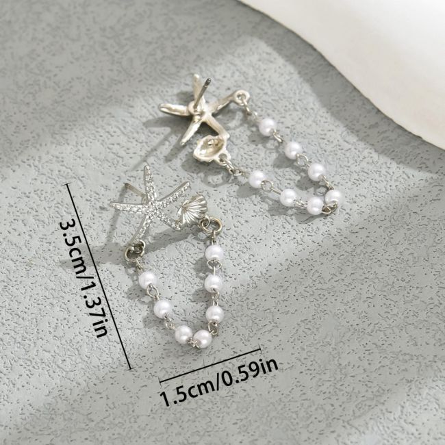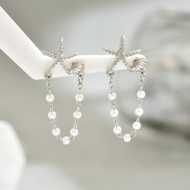 Earrings with Sweet Star and Shell Design Featuring Pearl Accents