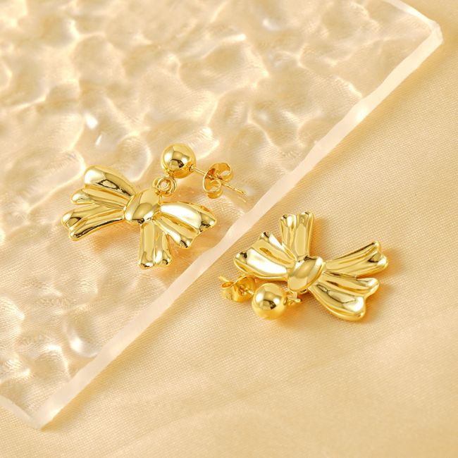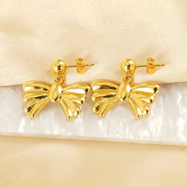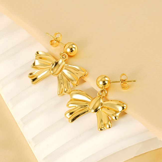 Elegant 18K Gold Plated Stainless Steel Bow Drop Earrings for Women
