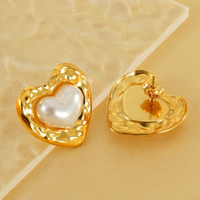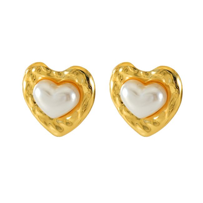 Elegant French-inspired Heart-shaped Pearl Drop Earrings with Textured Finish