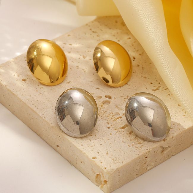 Elegant Matte Oval Stainless Steel Earrings for Women in 18K Gold Finish