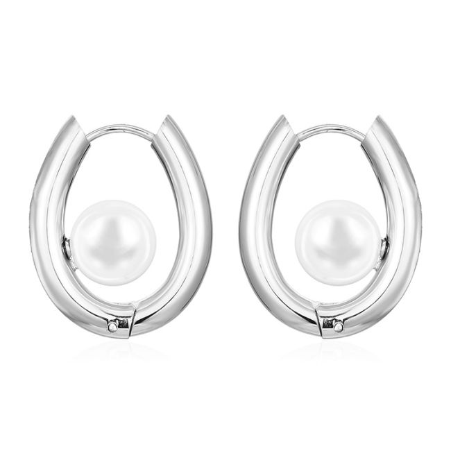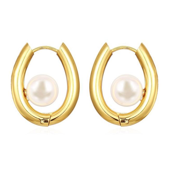 Elegant Oval Pearl Stud Earrings in 18K Gold-Plated Stainless Steel