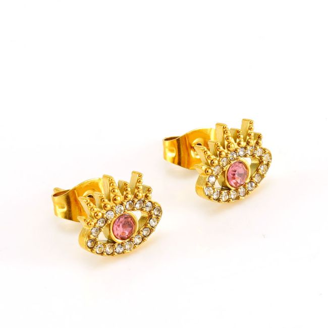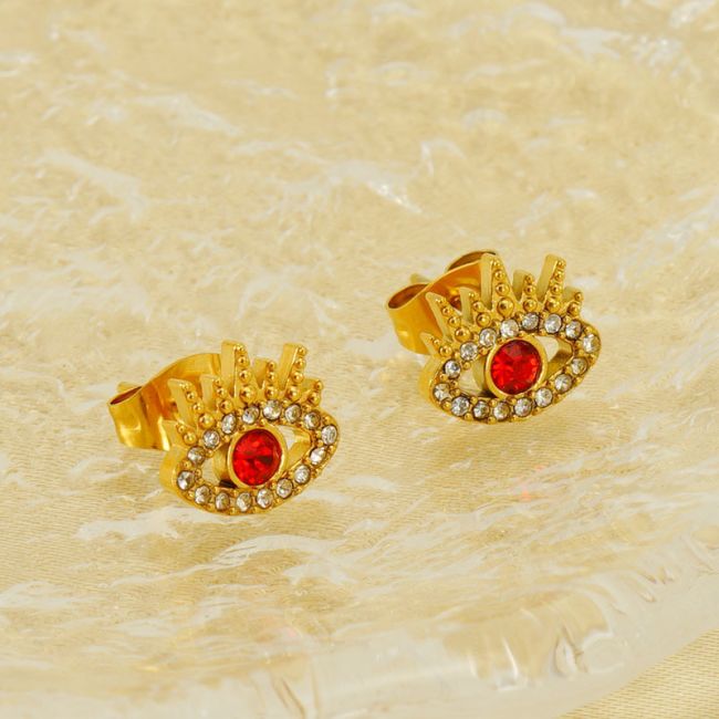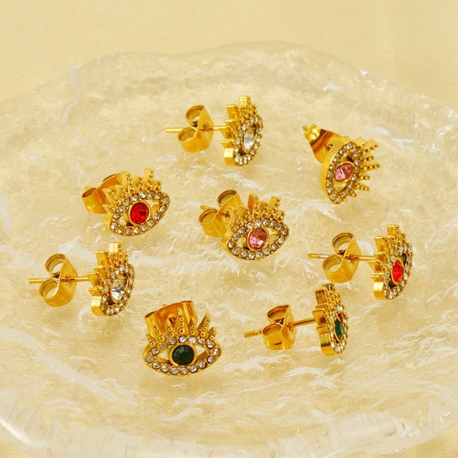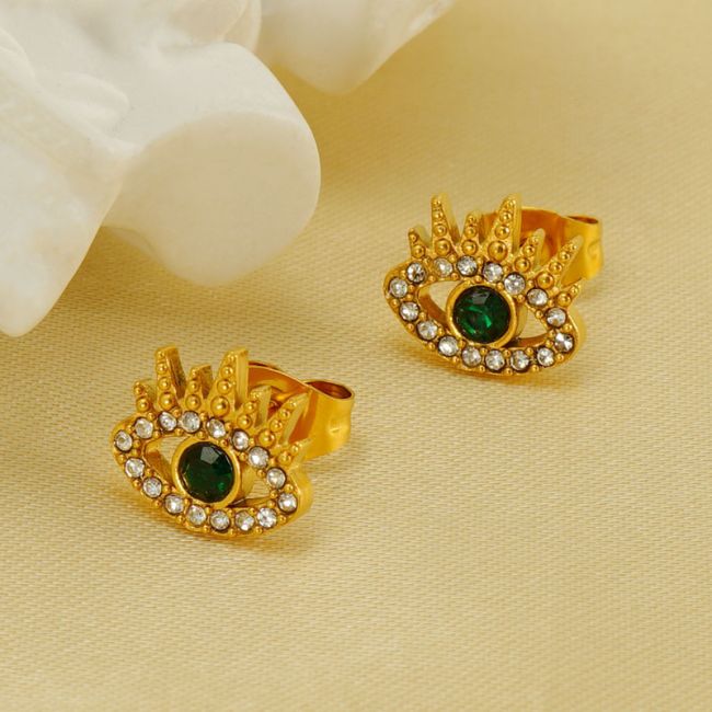 Evil Eye Stud Earrings with Zircon Stones in 18K Gold Plated Stainless Steel