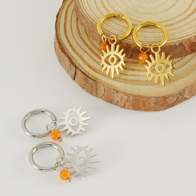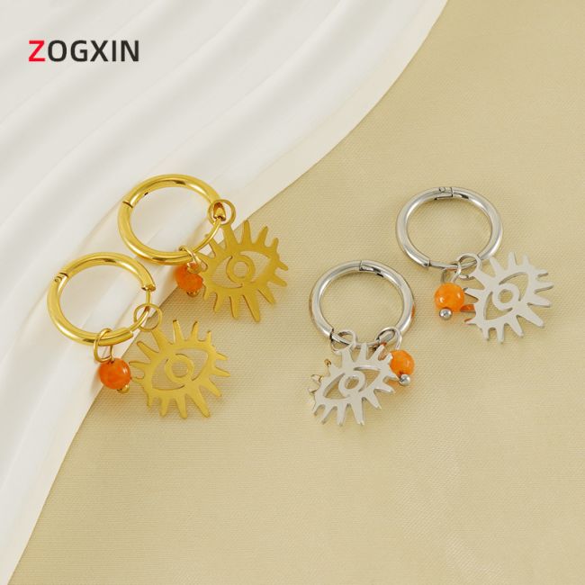Evil Eye Titanium Steel Earrings for Women - Fashionable and Versatile 18K Gold-Plated Studs