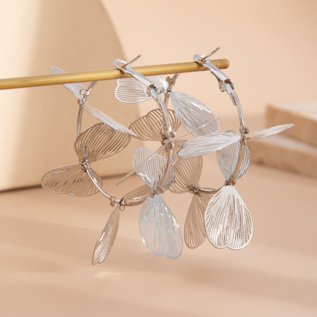 Exaggerated Metal Petal Ginkgo Leaf Drop Earrings with Fringe Details
