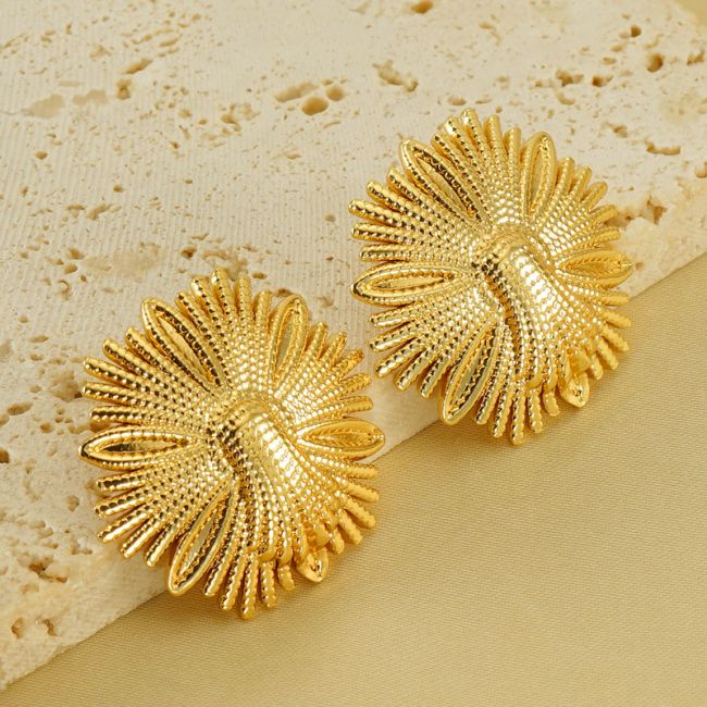 Sunflower Stud Earrings - Retro Gold-Plated Stainless Steel Floral Earrings for Women
