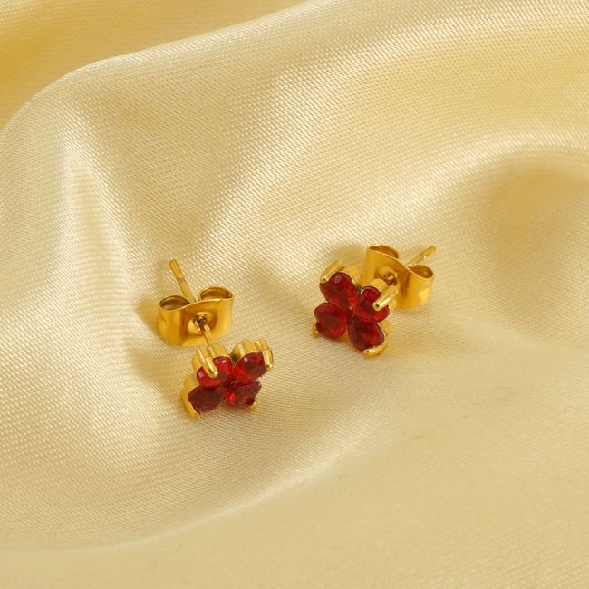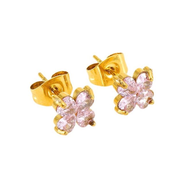 Four-Leaf Clover Zircon Snowflake Stud Earrings for Women - Stainless Steel Elegant Geometric Design