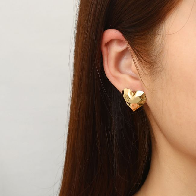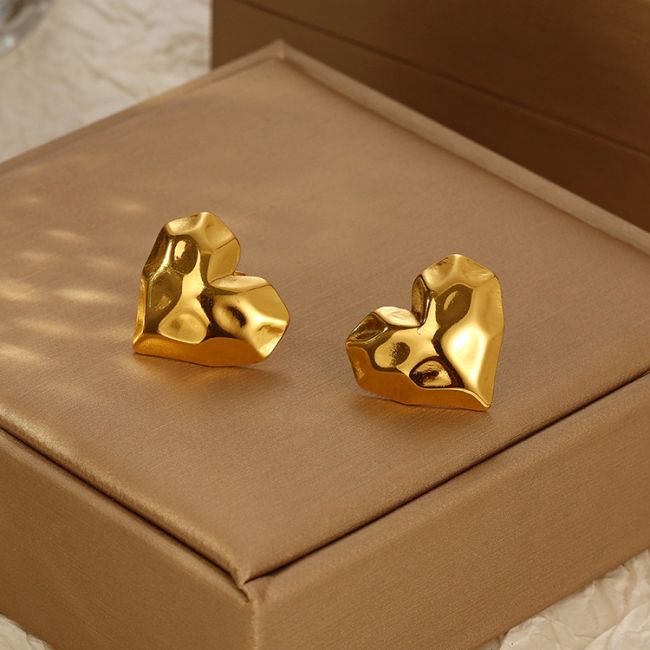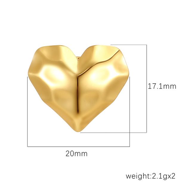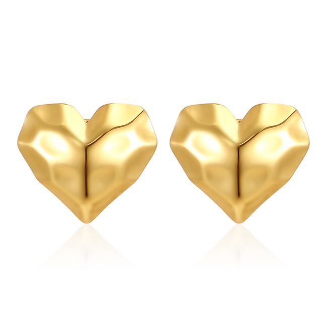 Hammered Texture Heart Stud Earrings in 18K Gold Plated Stainless Steel