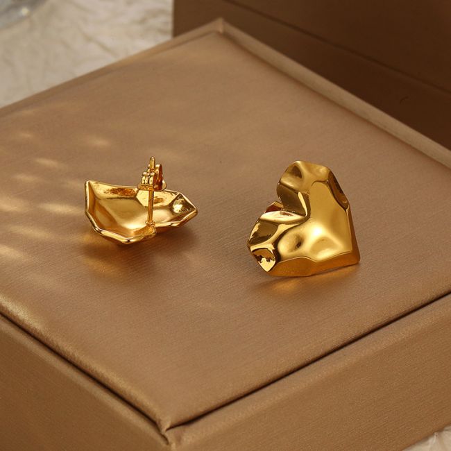 French Vintage Diamond-Cut Heart Stud Earrings in 18K Gold Plated Stainless Steel