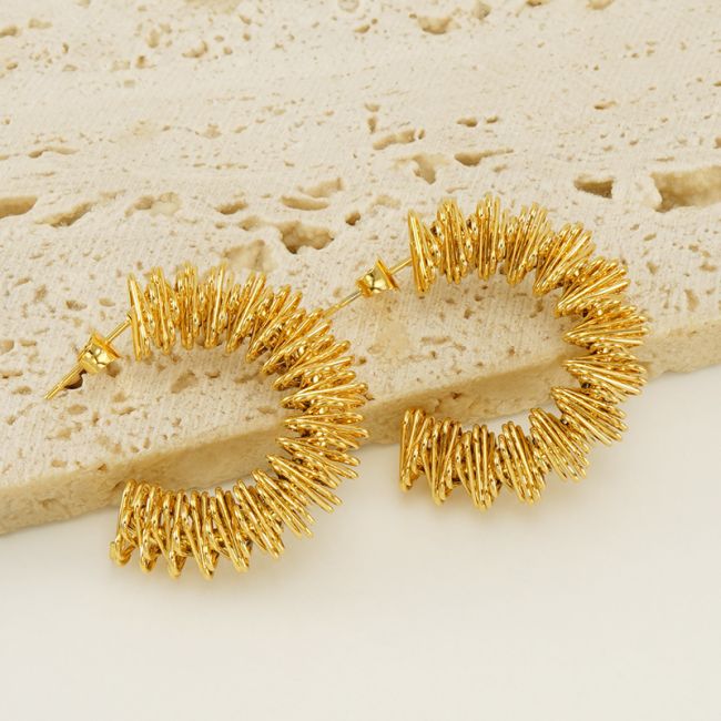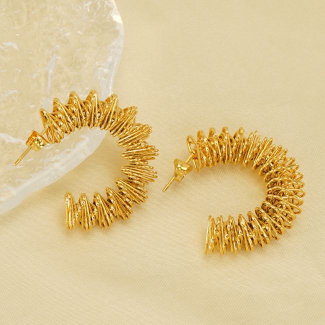 U-Shaped Spring Hoop Earrings with Hollow Geometric Design in 18K Gold Tone