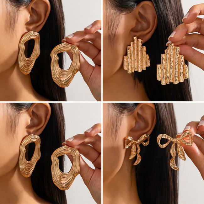 Geometric Alloy Earrings Set with Bold Irregular Line Patterns