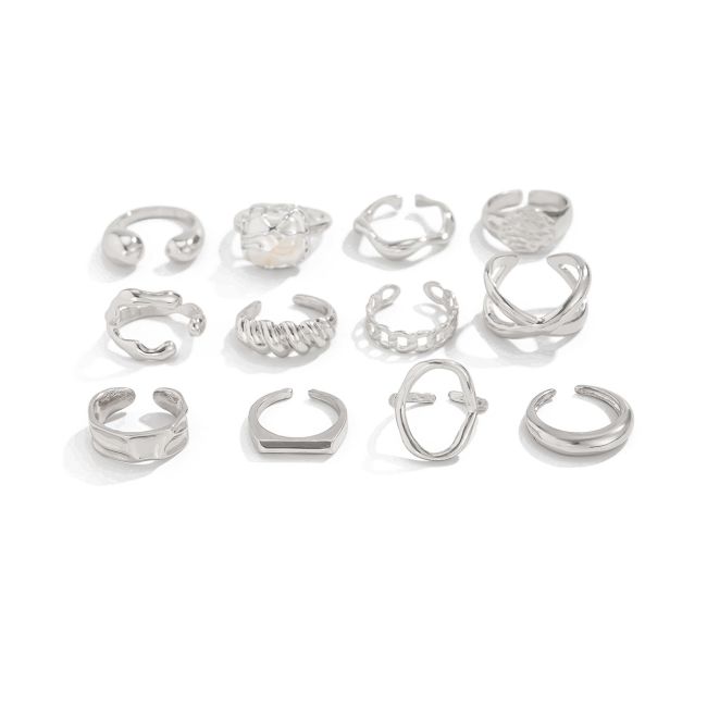 - Size/Specifications: Set of 12 stackable rings for versatile styling