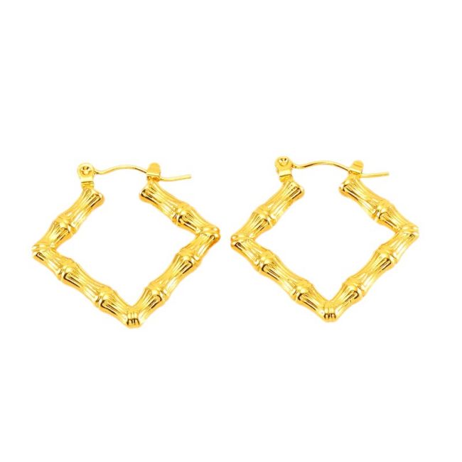 Geometric Bamboo-Inspired Titanium Gold-Plated Drop Earrings for Women