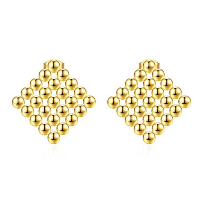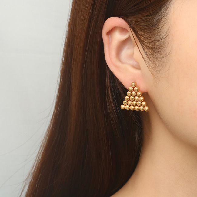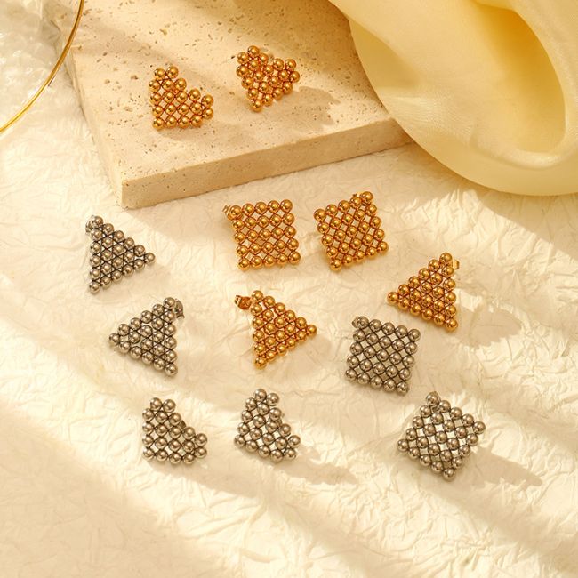 Geometric Beaded Stud Earrings - Stainless Steel Heart, Square & Triangle Designs