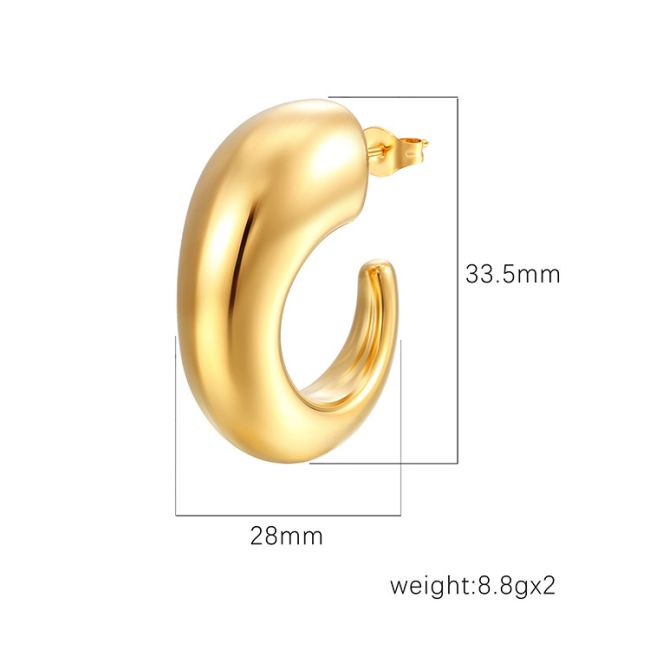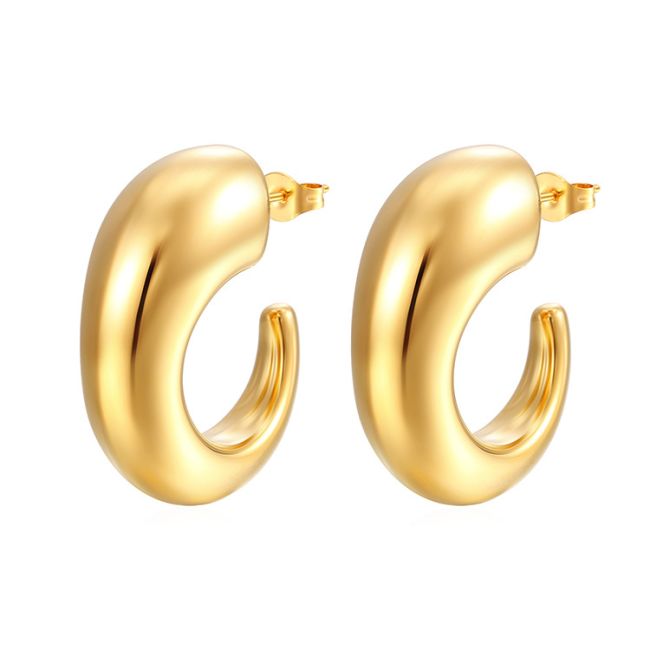 Geometric C-Shaped Hoop Earrings in 18K Gold Plated or Steel Finish