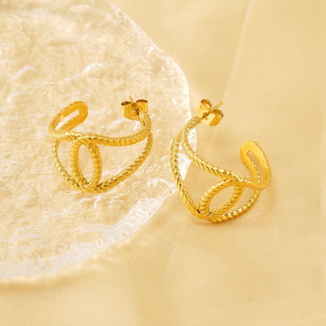 Geometric Cross Hoop Earrings with Hollow Design in 18K Gold Stainless Steel