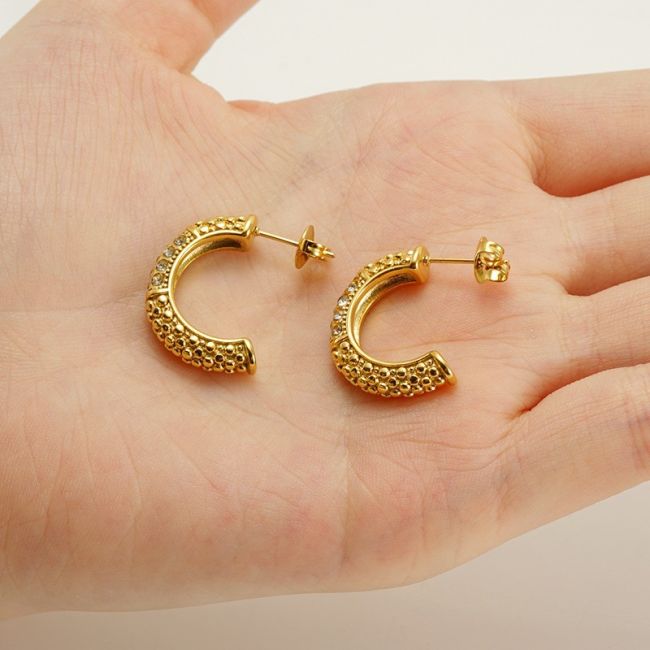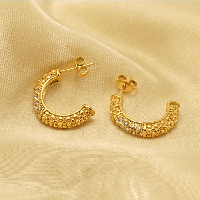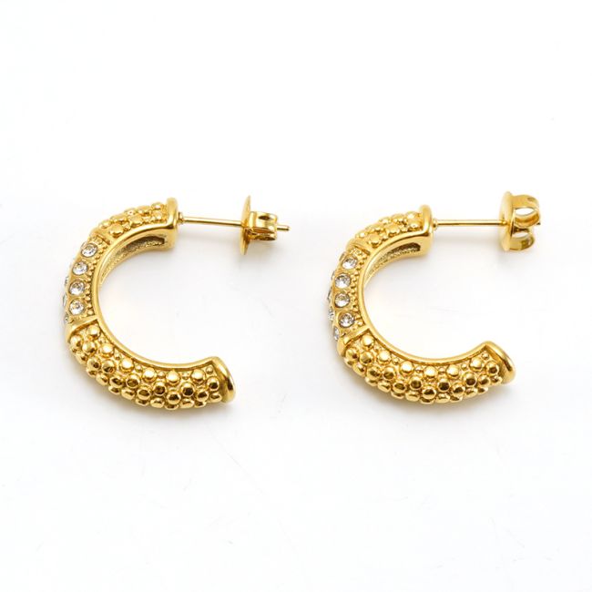 C-Shaped Diamond Accent Earrings for Women - 18K Gold Plated Stainless Steel Geometric Studs