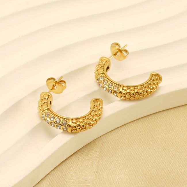 Geometric Diamond-Studded 18K Gold Plated Stainless Steel Earrings