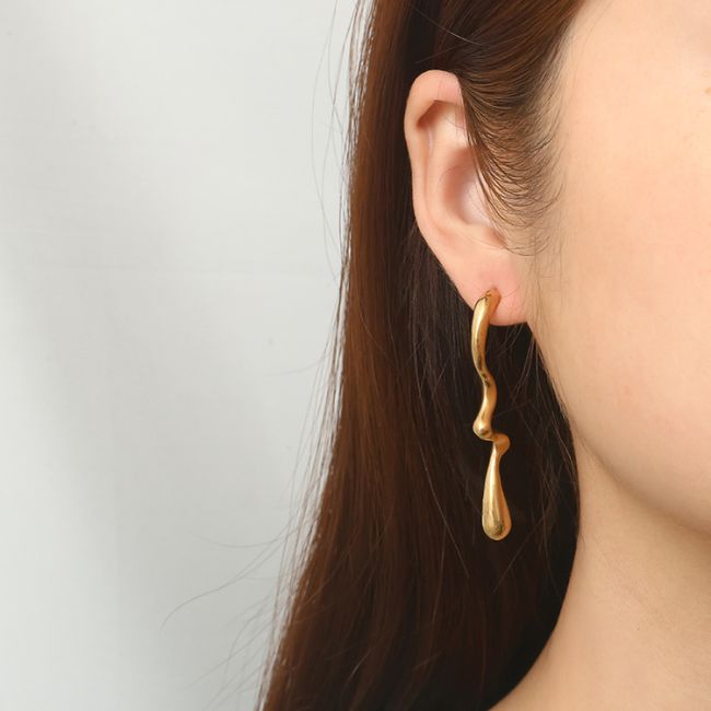 Geometric Drop Earrings with Minimalist Curved Design in Steel and Gold