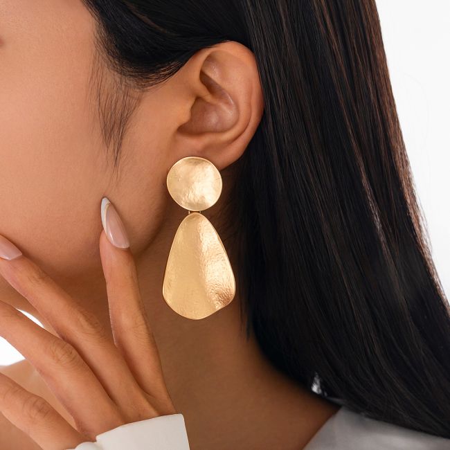 Geometric Folded Teardrop Drop Earrings Set with Hammered Texture