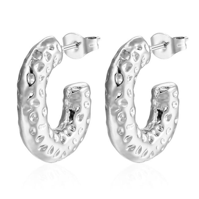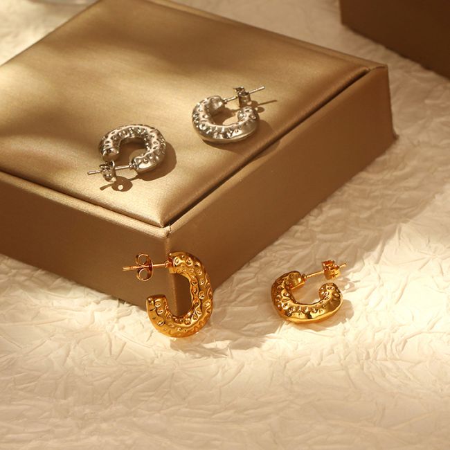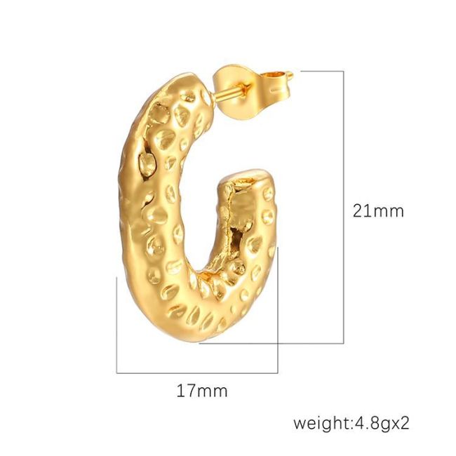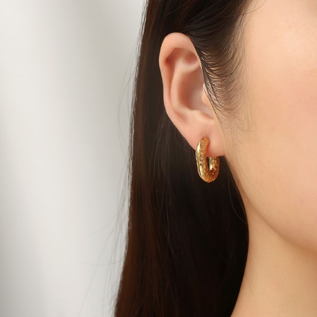 Geometric Hammered Oval Stainless Steel Earrings for Women - 18K Gold Plated Light Luxury Fashion Accessories