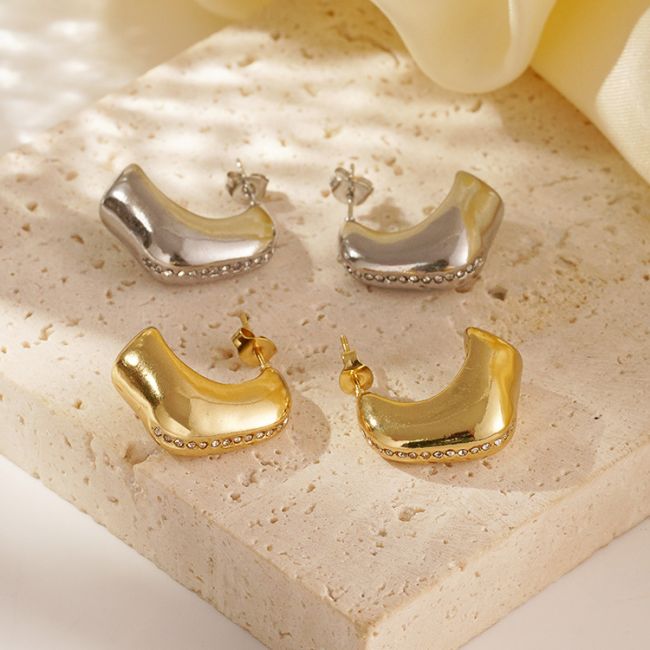 - Design: Asymmetrical geometric shape with micro-pave zircon accents
