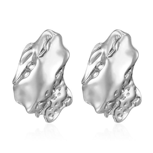 Geometric Lava Meteorite Stainless Steel Earrings for Women - Irregular Folded Design