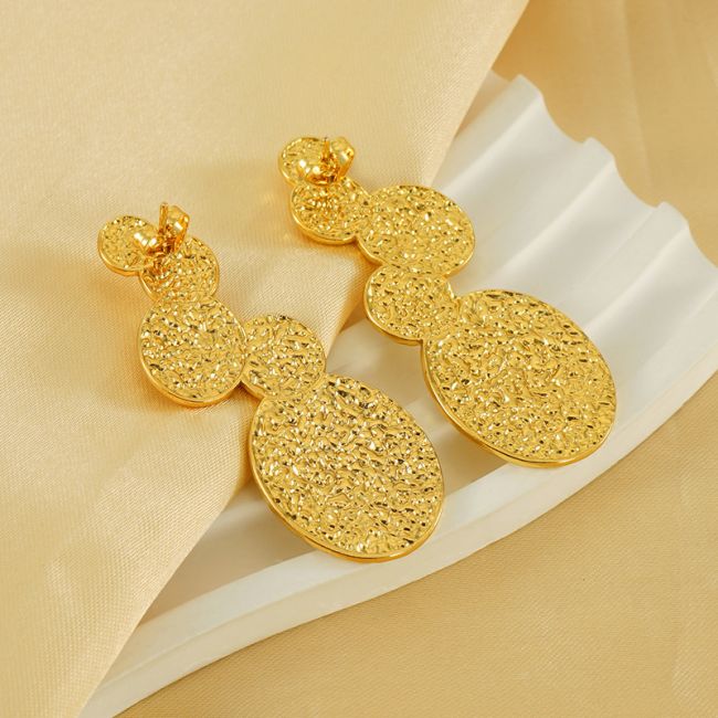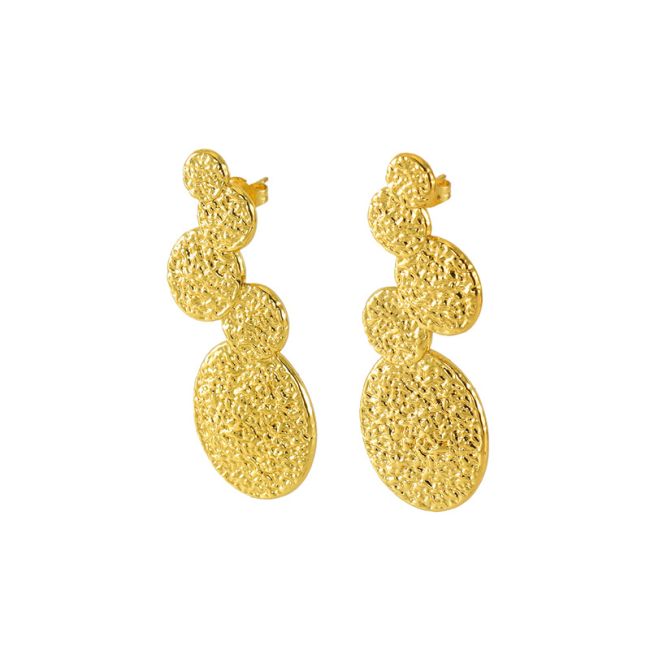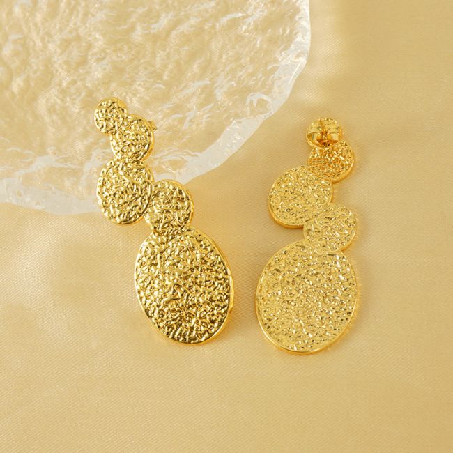 Geometric Long Drop Earrings with Irregular Textured Design in 18K Gold Tone
