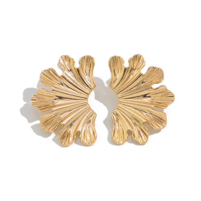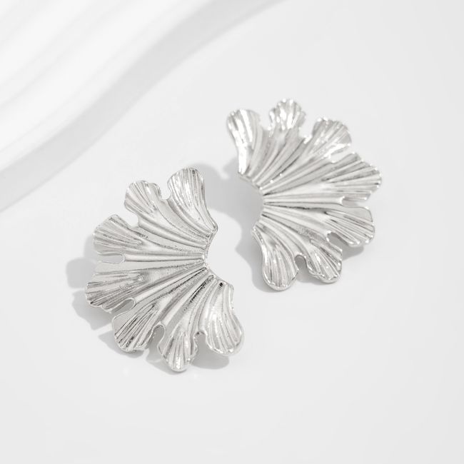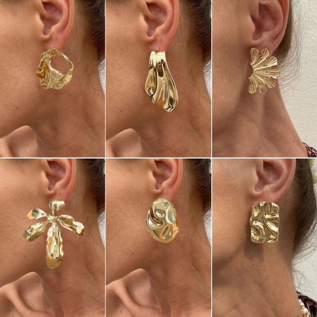 Geometric Metal Flower Earrings with Asymmetric Wrinkled Design