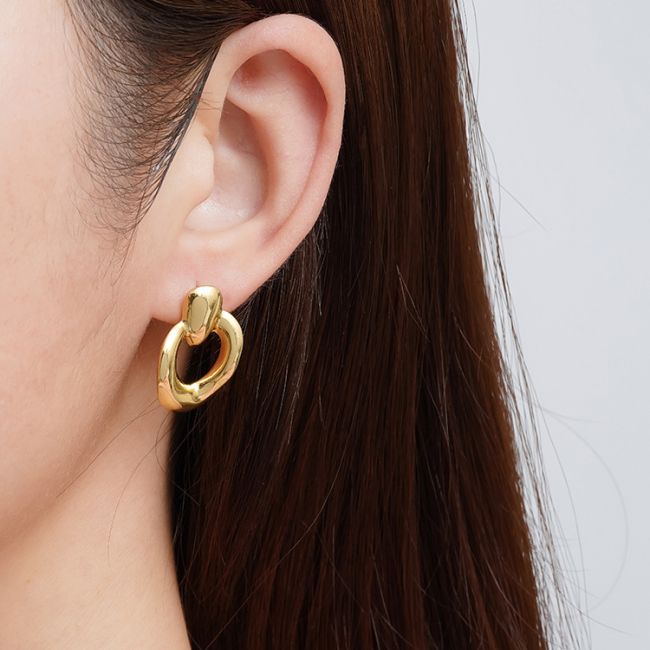 Geometric Beaded Triangle Earrings in 18K Gold and Steel Finish