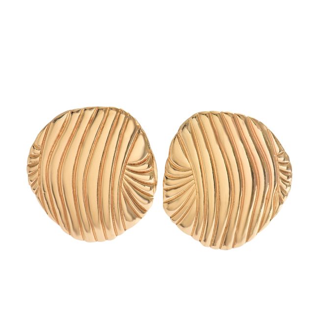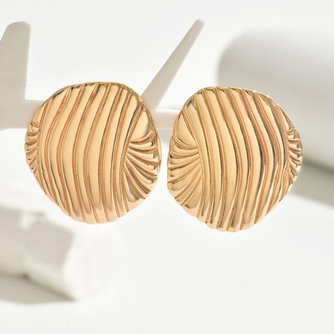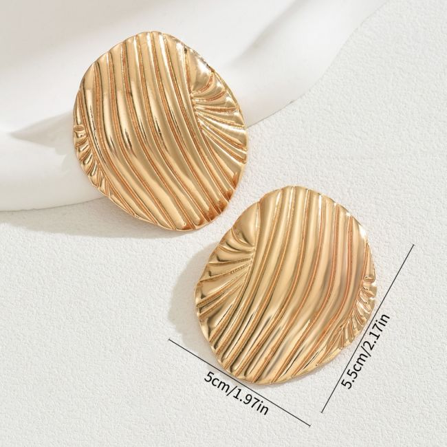 Geometric Minimalist Luxury Women's Earrings with Crinkle Line Design in Gold-Tone Alloy