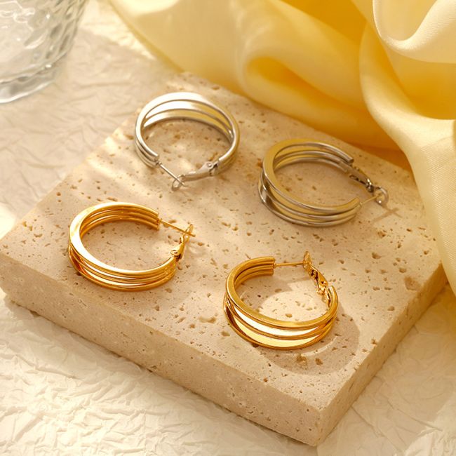 Geometric Multi-Layer Flat Hoop Earrings for Women - Vintage-Inspired 18K Gold Plated Stainless Steel