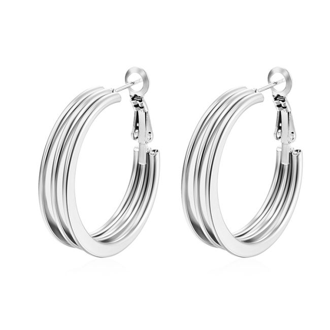 - Design: Contemporary geometric multi-layer flat hoop construction
